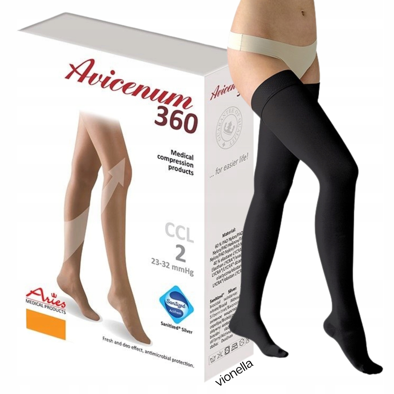 Avicenum PHLEBO 360 pończochy to pończoszniczy medyczny wyrób uciskowy w II klasie kompresji (CCL 2). Jest to wyrób okrągłodziany z delikatną, lekką ale wytrzymałą strukturą. Wyrób produkowany jest z materiałów niedrażniących i niezawierających lateksu. Mechanizm działania pończoszniczego medycznego wyrobu kompresyjnego opiera się na wywieraniu określonego ucisku w okolicy kostki kończyny dolnej, który stopniowo maleje kierując się ku sercu. Ucisk w okolicy kostki, w miejscu pomiaru obwodu w punkcie b (patrz tabela rozmiarów) jest największy i osiąga wartości 23-32 mmHg. Aby osiągnąć pożądany efekt, konieczne jest, aby wybrać odpowiedni rozmiar. Wyrób uciskowy powinien być stosowany podczas aktywności fizycznej, natomiast podczas dłuższego przebywania w stanie spoczynku powinien być zdejmowany (chyba, że lekarz zaleci inaczej). Avicenum PHLEBO 360 pończochy są wyrobem medycznym przeznaczonym do stosowania zarówno w warunkach domowych jak i placówkach opieki zdrowotnej. Avicenum PHLEBO 360 pończochy to wyrób medyczny przeznaczony do komresjoterapii stosowanej w chorobach naczyń żylnych i różnego pochodzenia obrzęków kończyn dolnych.