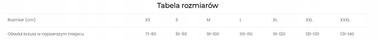 DOBIERZ ROZMIAR NA PODSTAWIE TABELI PONIŻEJ