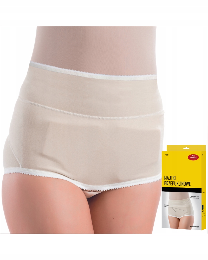 Majtki przepuklinowe damskie Pani Teresa Medica PT 0112 to wyrób medyczny wielokrotnego użytku. Wykonane z elastycznej dzianiny, mają zastosowanie w przypadku pacjentek, u których istnieją przeciwskazania do operacji niewielkiej przepukliny pachwinowej, po operacjach rozległych przepuklin pachwinowych lub udowych, profilaktyczne przeciw nawrotom w przypadku słabego aparatu mięśniowo- więzadłowego. Idealny przy wspomaganiu procesu leczenia i rehabilitacji. Majtki przepuklinowe doskonale zabezpieczają uwypuklanie się worka przepuklinowego podczas wykonywania podstawowych czynności. Produkt można stosować profilaktycznie przy zwiotczałych mięśniach brzucha i poszerzonych kanałach pachwinowych.