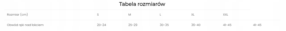 Dobierz rozmiar na podstawie tabeli producenta. Kieruj się obwodem ręki nad łokciem.