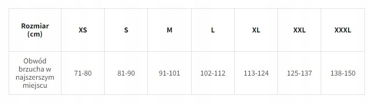 DOBIERZ ROZMIAR NA PODSTAWIE TABELI PONIŻEJ