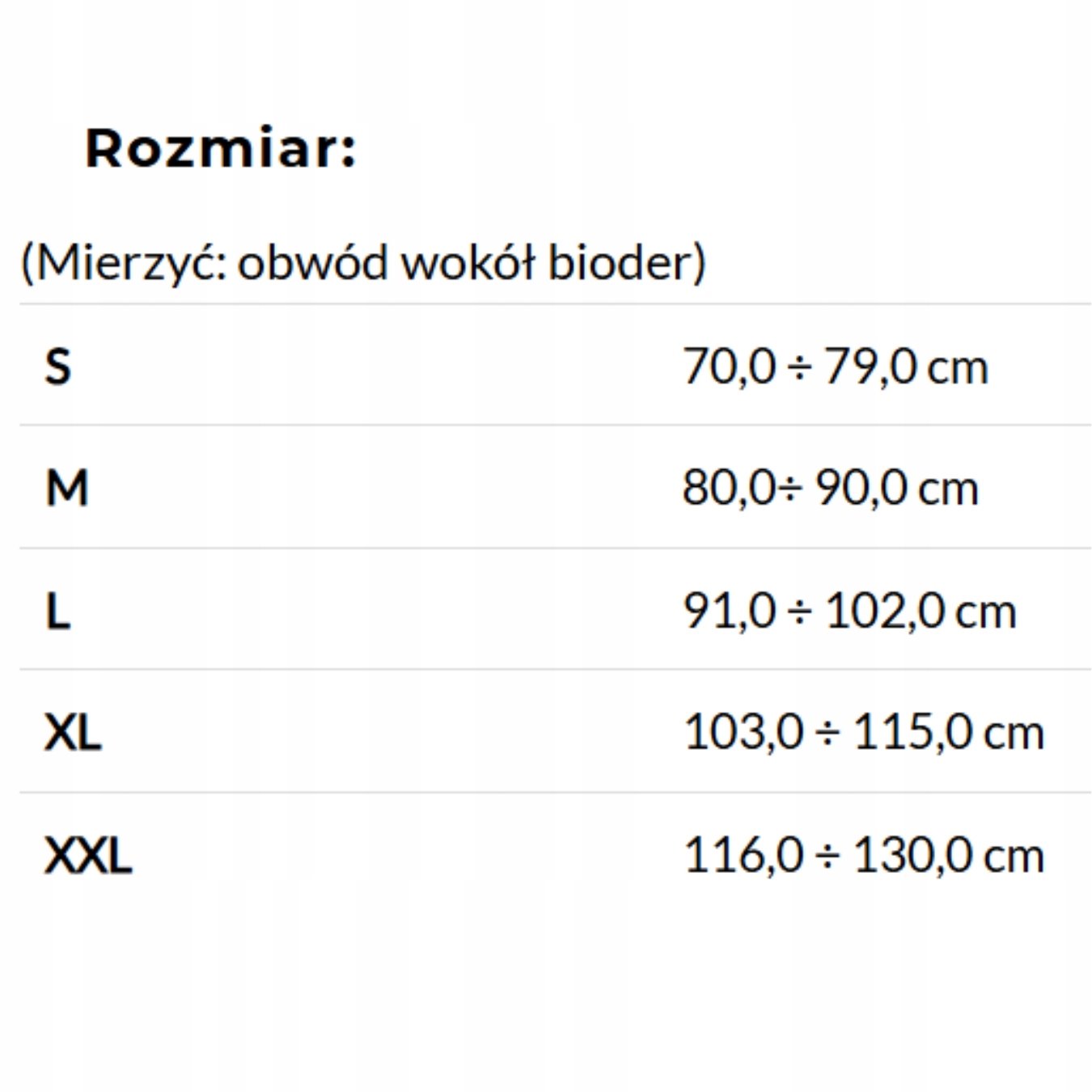 Aby dobrać rozmiar zmierz obwód wokół bioder i dobierz na podstawie tabeli producenta.
