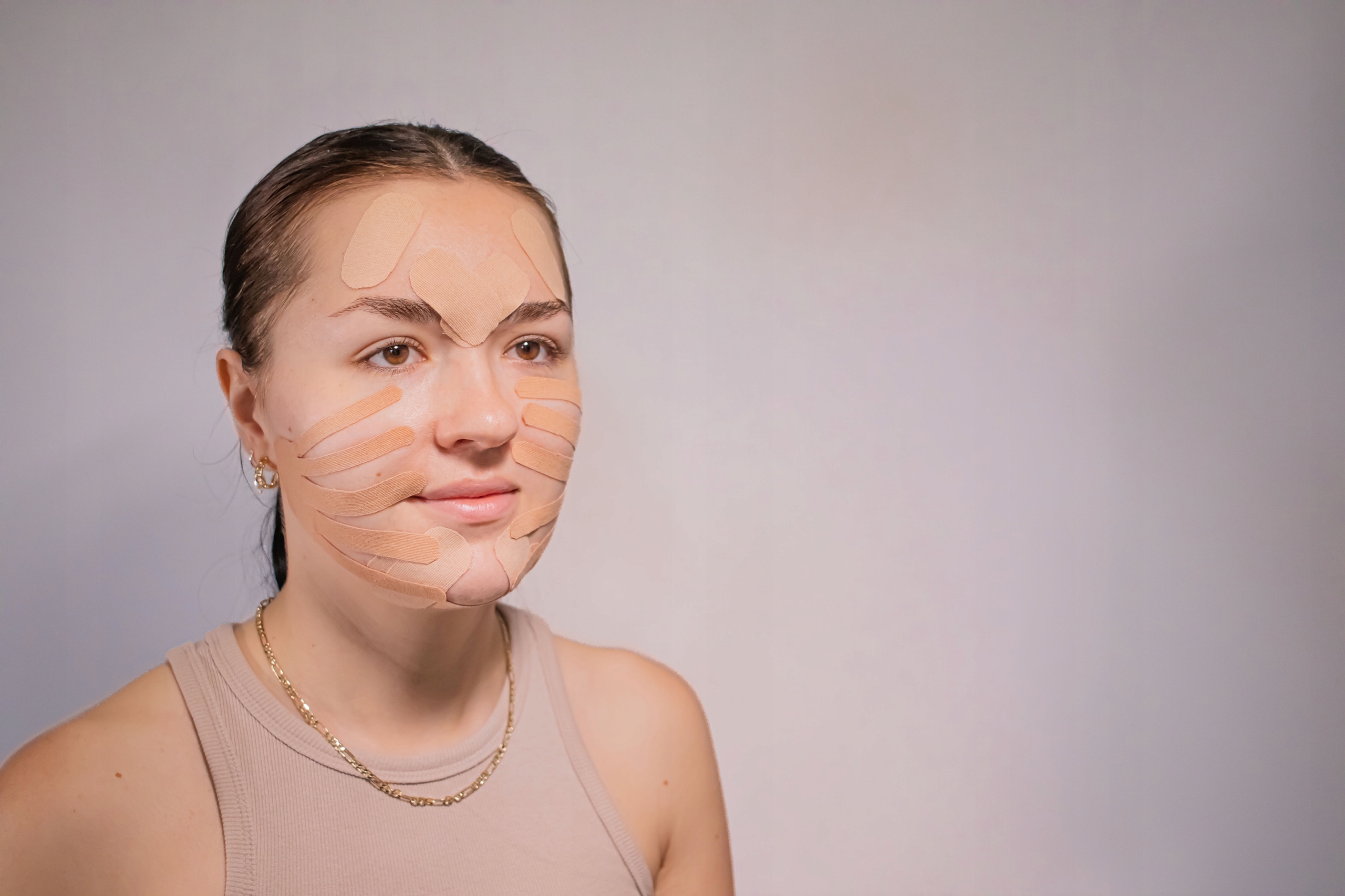 - Taśma kinezjologiczna świetnie sprawdza się jako wsparcie w codziennej pielęgnacji twarzy i ciała. Może być stosowana w tapingu limfatycznym i estetycznym w celu poprawy wyglądu skóry i jej ogólnego komfortu. Pomaga zmniejszyć widoczność napięć mimicznych, delikatnie wygładzić rysy oraz podkreślić owal twarzy. Jest również popularnym uzupełnieniem masaży i zabiegów liftingujących wykonywanych w domowej pielęgnacji.