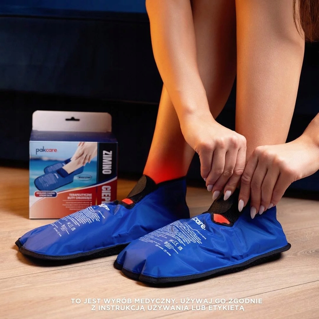 Terapeutyczne chłodząco – grzejące buty to wygodne i skuteczne rozwiązanie stworzone z myślą o osobach zmagających się z bólem, obrzękiem i zmęczeniem stóp oraz kostek. Dzięki funkcji terapii ciepłem i zimnem pomaga szybko przynieść ulgę po intensywnym dniu, treningu czy przy obrzękach spowodowanych przeciążeniem. Stosowany na zimno redukuje stan zapalny, zmniejsza opuchliznę i łagodzi ból, idealnie sprawdzając się po urazach, długim chodzeniu lub pracy stojącej. Terapia ciepłem działa rozluźniająco – poprawia krążenie, ułatwia regenerację mięśni oraz zmniejsza sztywność i napięcie w stopach. Kompres w kształcie butów otula stopy równomiernie, dopasowuje się do ich kształtu i zapewnia wysoki komfort użytkowania. Można stosować go w domu, po aktywności fizycznej i podczas codziennego odpoczynku. Regularne używanie kompresu pomaga zmniejszyć zmęczenie, wspiera regenerację i poprawia ogólny komfort chodzenia. Idealny dla osób aktywnych oraz tych, którzy chcą szybko i skutecznie zadbać o swoje stopy i kostki.