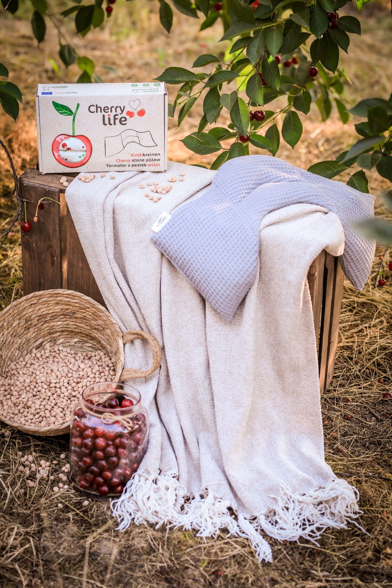 - Bezpieczeństwo i ekologia: Pestki wiśni to całkowicie naturalny, ekologiczny materiał, który nie zawiera żadnych chemikaliów. To bezpieczna alternatywa dla tradycyjnych termoforów z wypełnieniem chemicznym, przyjazna dla zdrowia i środowiska.