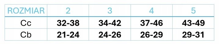 Aby dobrać odpowiedni rozmiar, należy zmierzyć obwód kostki w najwęższym miejscu oraz obwód łydki w najszerszym miejscu. Należy też zmierzyć długość nogi aby określić długość (normal/long). Aby ustalić długość podkolanówek , nogę należy zmierzyć od punktu cC do podłogi. Następnie porównaj wyniki z tabelą rozmiarów poniżej, aby upewnić się, że wybrane podkolanówki będą idealnie pasować. Pomiaru powinno się dokonać rano. W razie problemów skonsultować się z lekrzem.