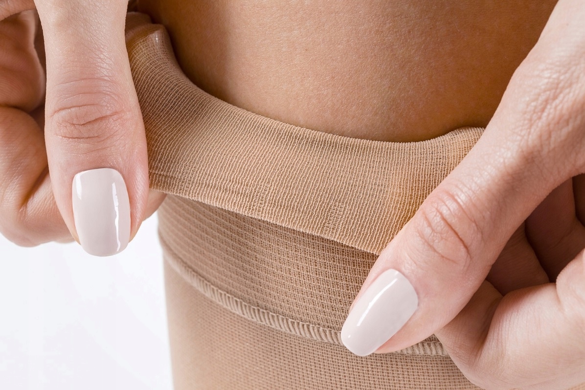 Nie należy ciągnąć wyrobu do góry, lecz delikatnymi ruchami, najlepiej używając specjalnych rękawic, płasko ułożonymi dłońmi równomiernie rozciągać materiał na nodze. Przy zdejmowaniu należy chwycić wyrób za górną krawędź i delikatnie ściągnąć w kierunku pięt. Podkolanówka jest prawidłowo założona, gdy górna krawędź mankietu znajduje się na wysokości 3cm pod kolanem.