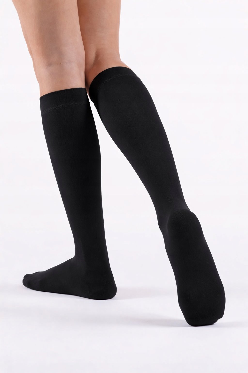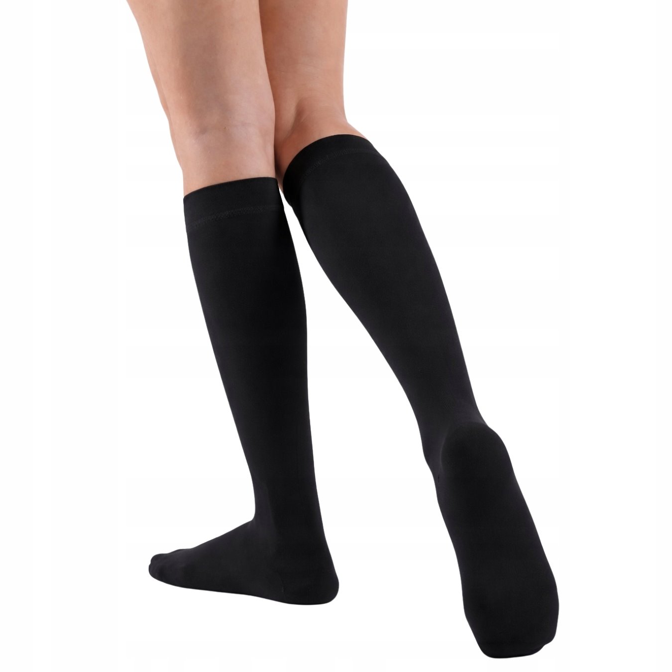 Podkolanówki należy zwinąć od górnej krawędzi w kierunku palców, a następnie naciągnąć na stopę. Po dokładnym wygładzeniu powierzchni na stopie podkolanówkę należy podciągnąć aż do kolana. Przed zakładaniem najlepiej zdjąć z dłoni wszelkie ozdoby, aby nie uszkodzić materiału.