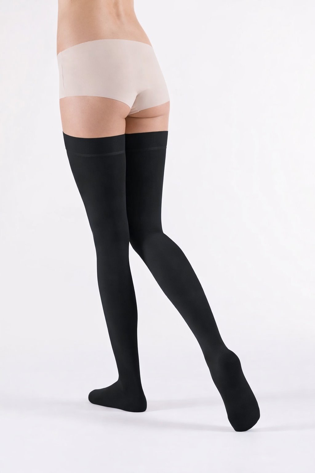 Pończochy Damskie Micro wykonano w dwóch klasach kompresji. Te w klasie niższej przeznaczone są do użytku w ramach profilaktyki. Pończochy w klasie drugiej służą jako środek wspomagający leczenie, a ich zakup warto skonsultować z lekarzem prowadzącym.