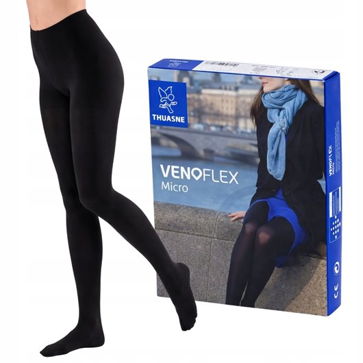 Venoflex Rajstopy Damskie – Micro to rajstopy przeciwżylakowe, które wykonano w standardzie RAL. Jako materiał zastosowano w nich mikrofibrę, która ma właściwości hipoalergiczne. Rajstopy wykonano z materiału, który nie traci swoich właściwości kompresyjnych, pomimo stosowania maści leczniczych w trakcie noszenia. Rajstopy Micro dostępne są w wariantach z otwartymi i zamkniętymi palcami oraz w dwóch długościach. Producent oferuje także dwa kolory Rajstopy: czarny i karmelowy. Dostępne są aż w sześciu rozmiarach i w dwóch wariantach: z otwartymi i zamkniętymi palcami. Można z powodzeniem używać ich przez cały rok.