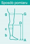 Należy też zmierzyć długość nogi czyli AD (podkolanówki) lub AG (pończochy).